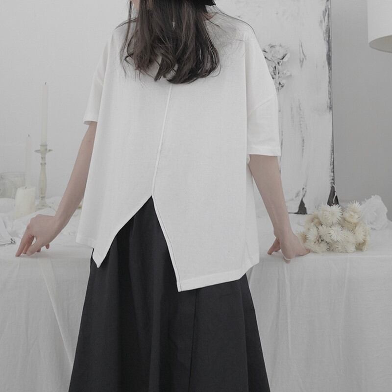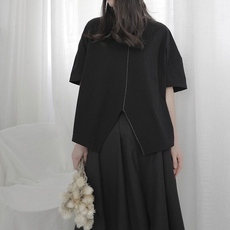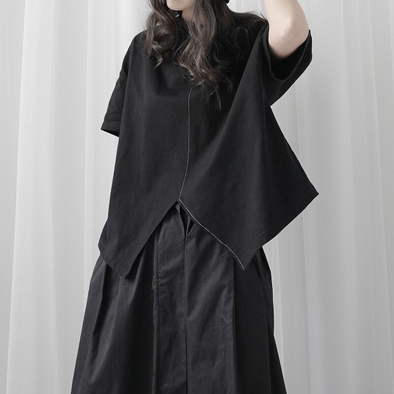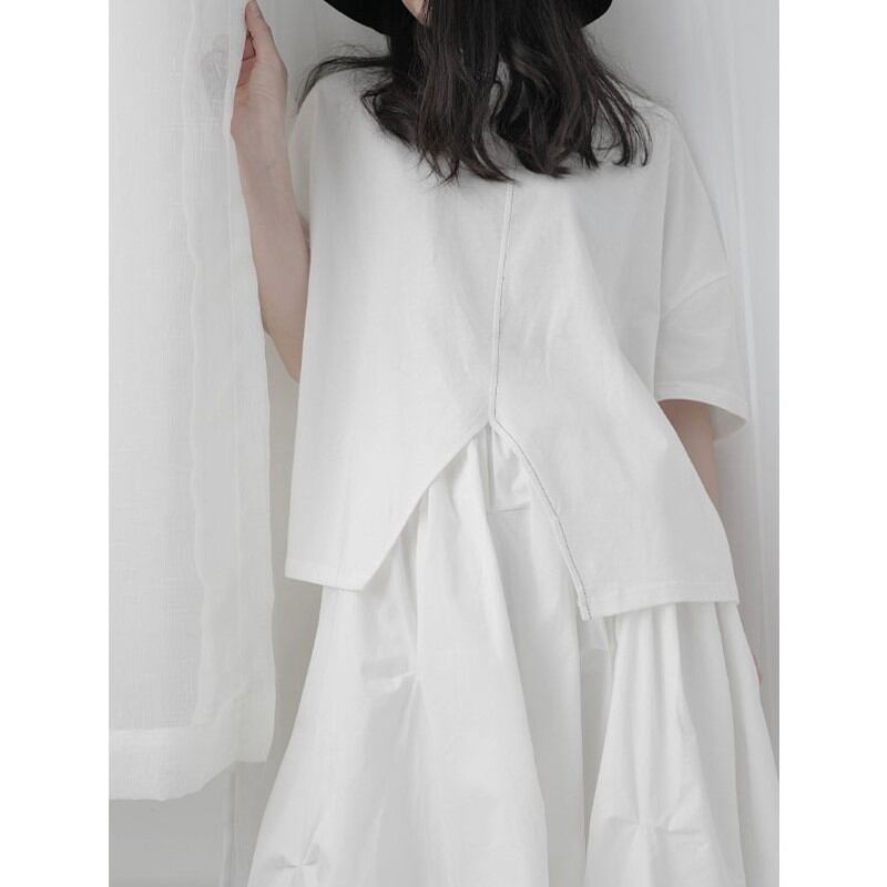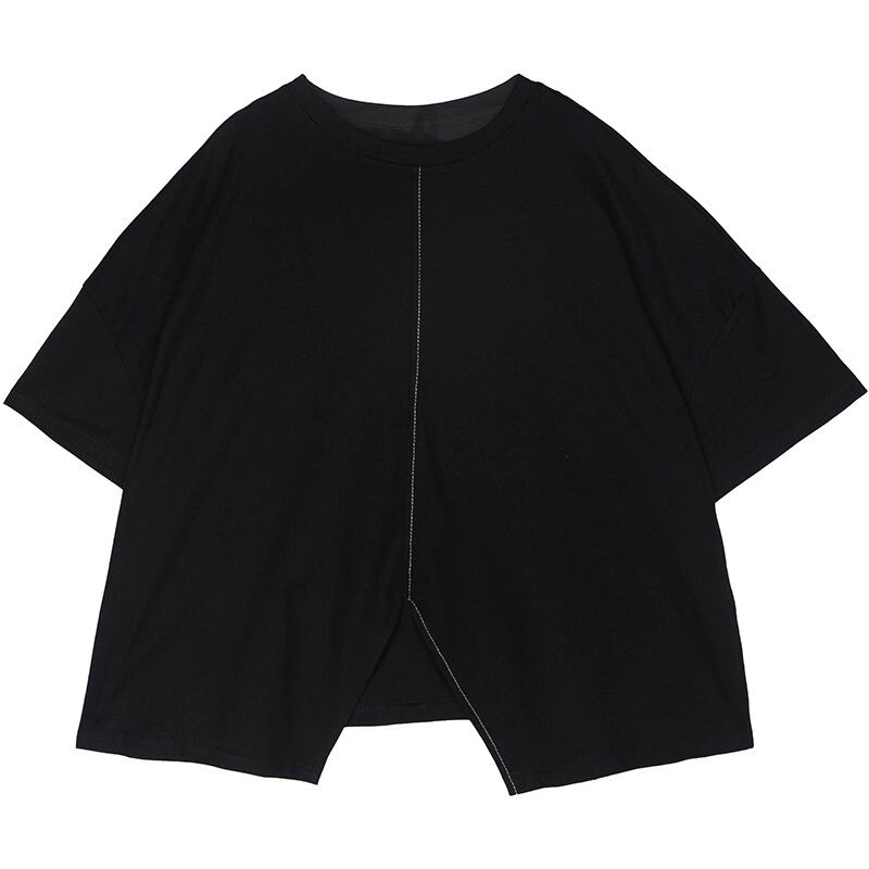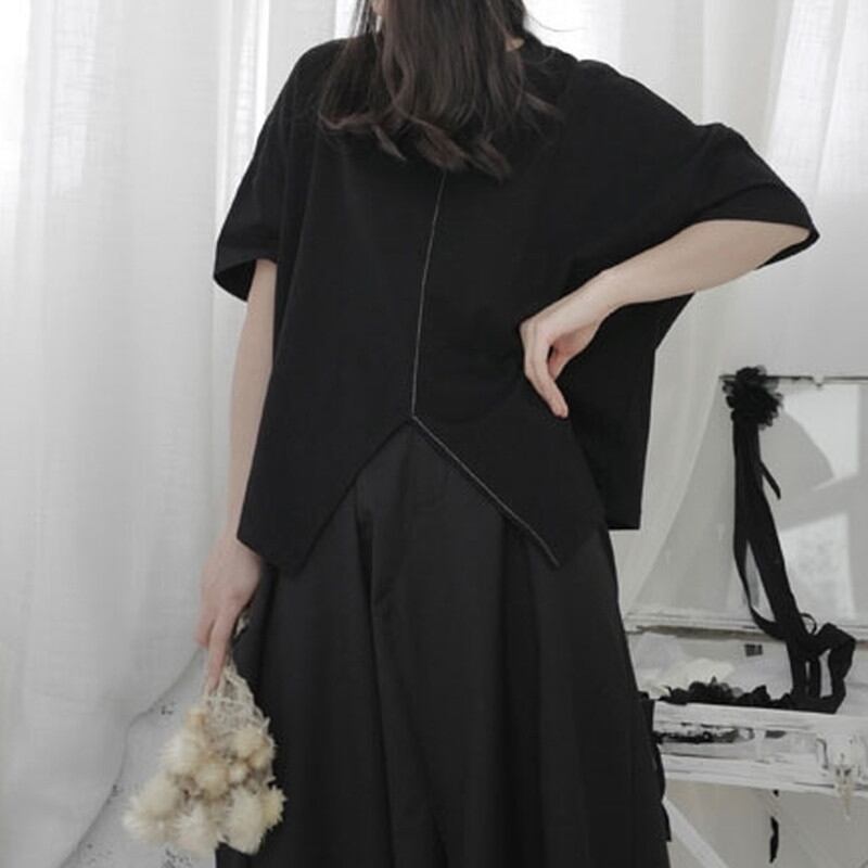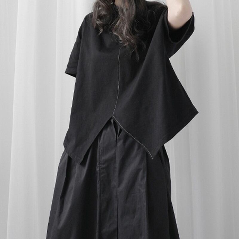 シンプルなデザインながら、スリットがアクセントとなり、一枚で着映えするアイテムです。