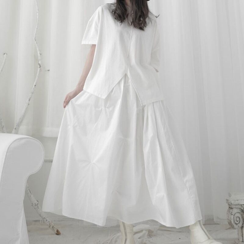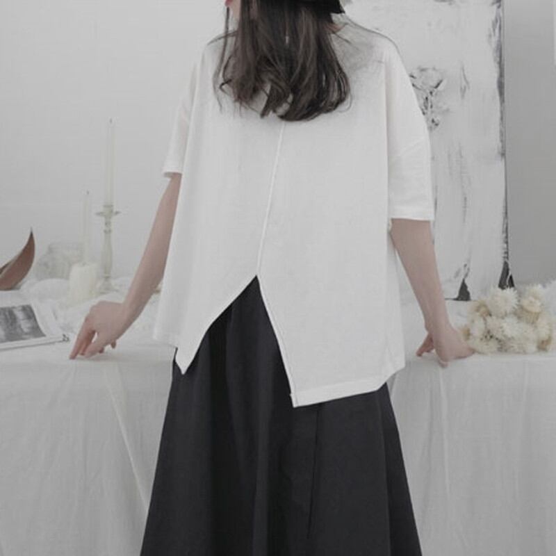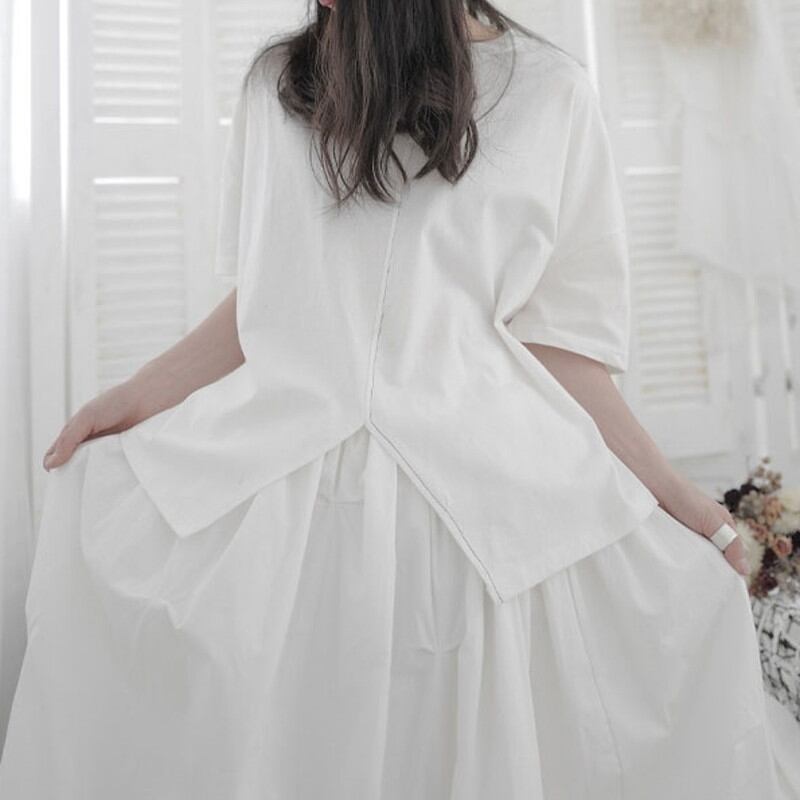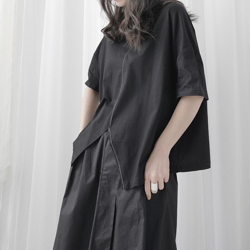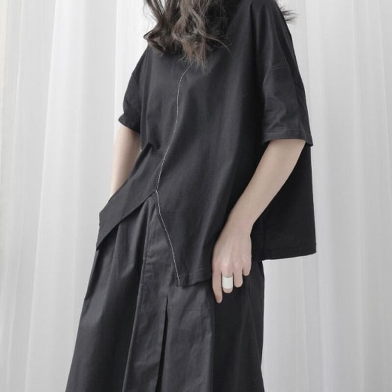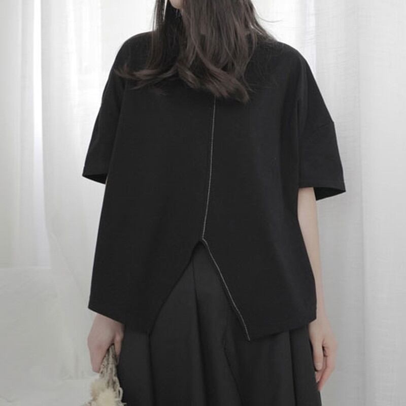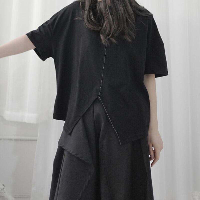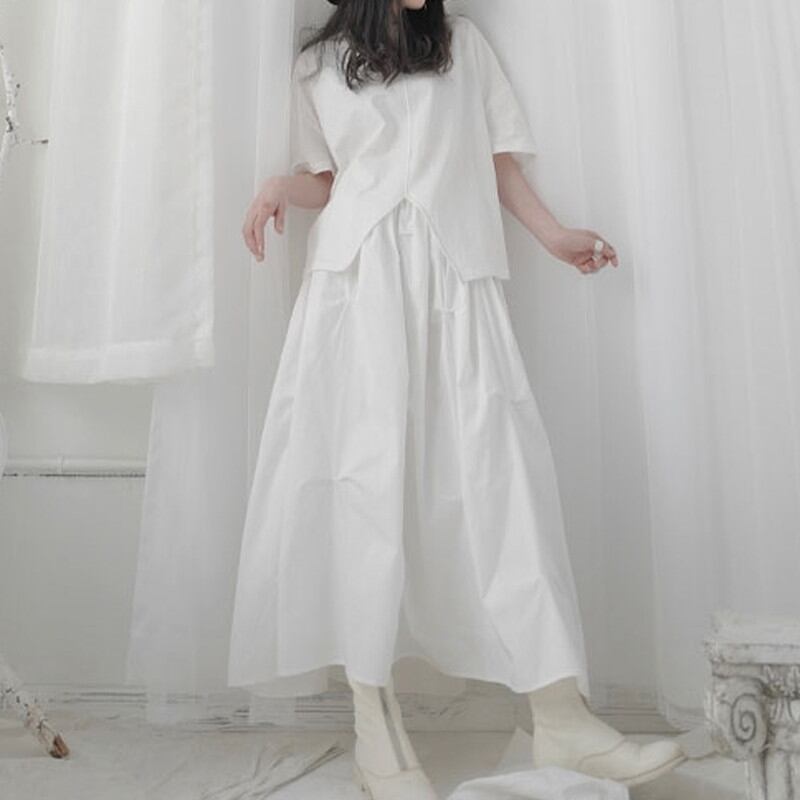 シンプルなデザインながら、スリットがアクセントとなり、一枚で着映えするアイテムです。