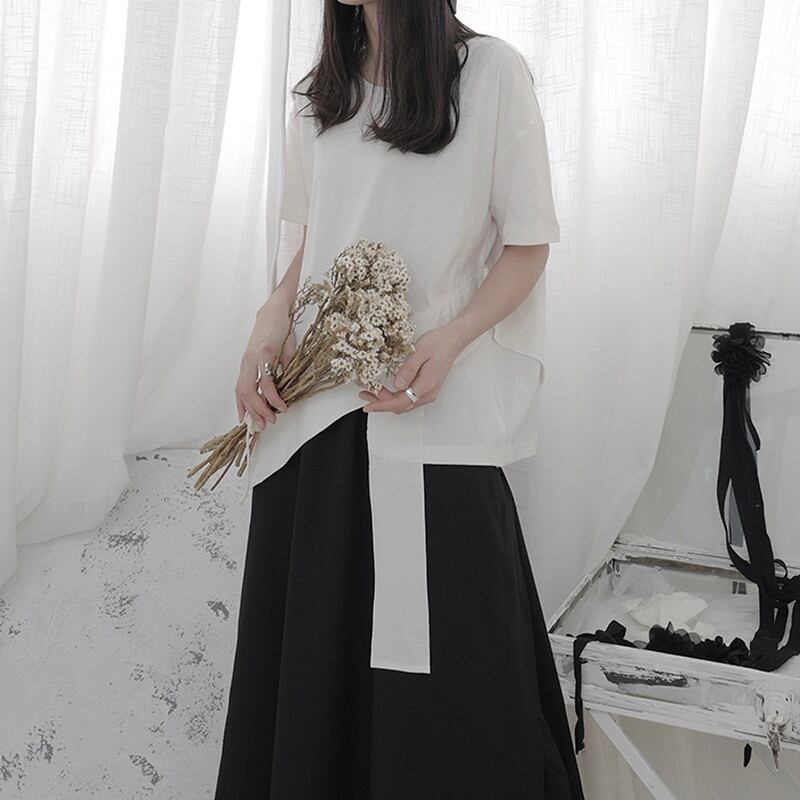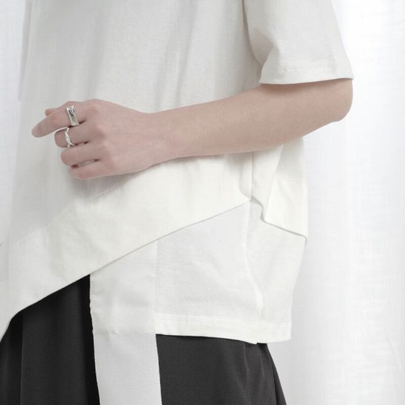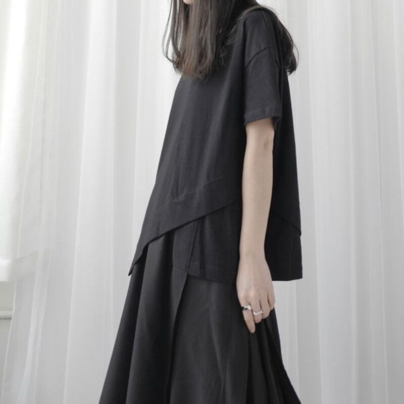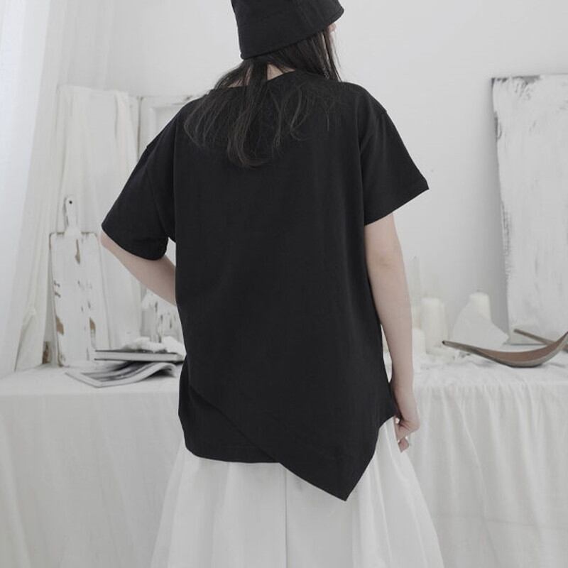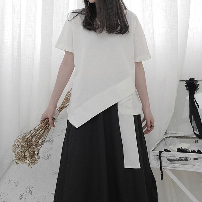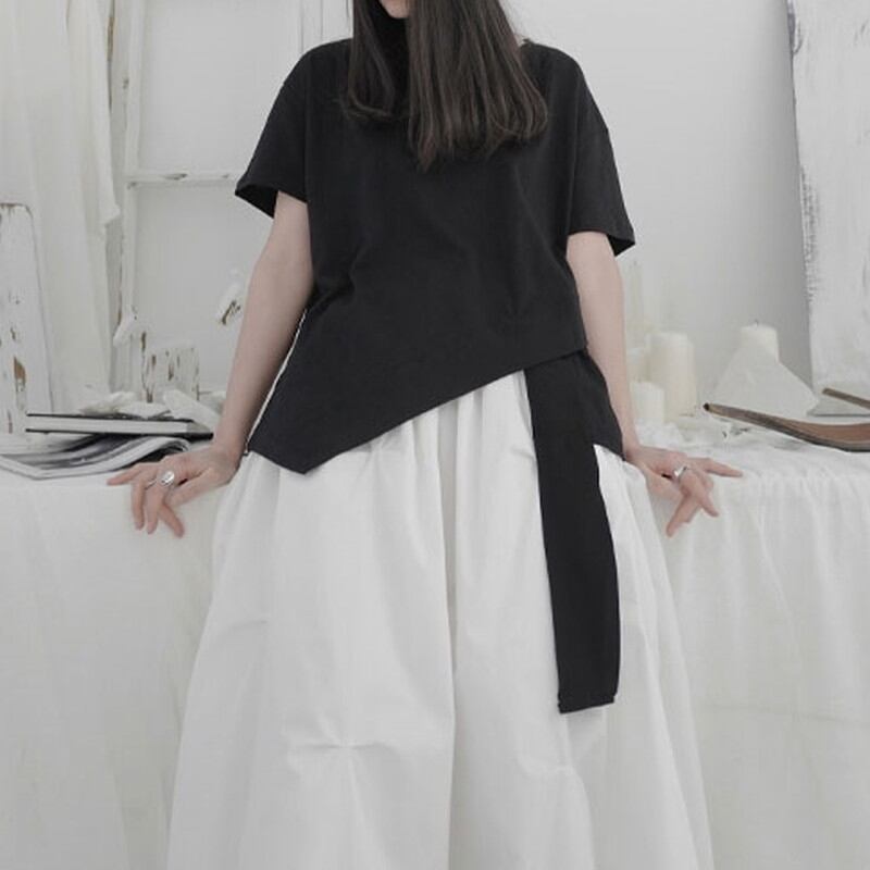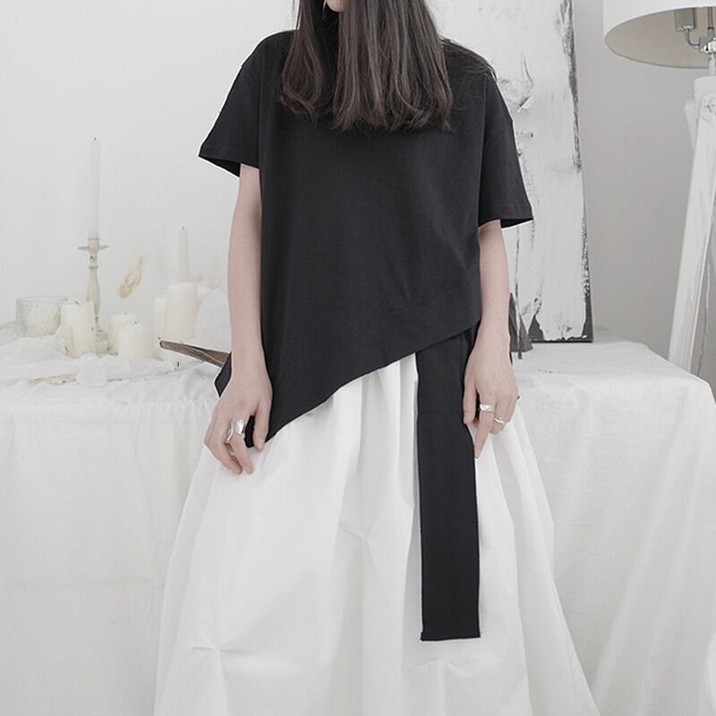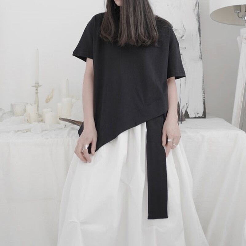 アシンメトリーなデザインがアクセントになり、シンプルながらも洗練された印象を与えます。