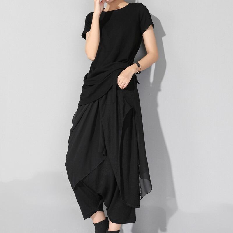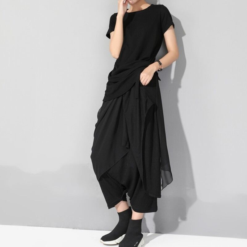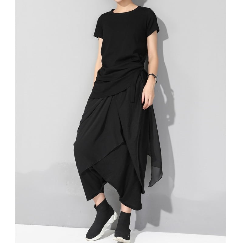 アシンメトリーなデザインが目を惹くトップスとパンツのセットアップです!