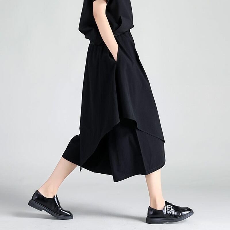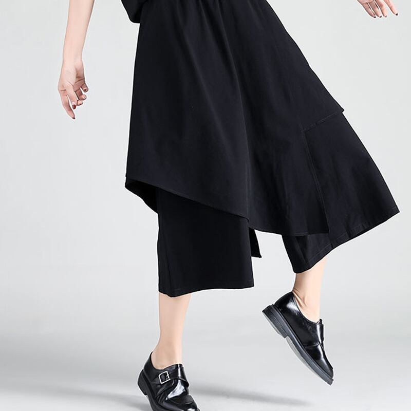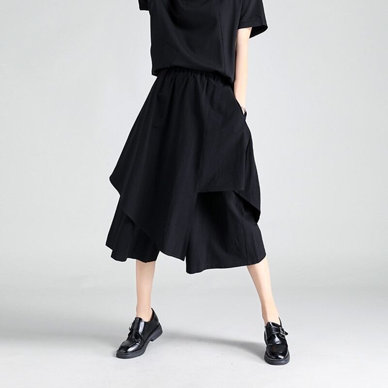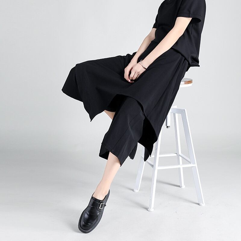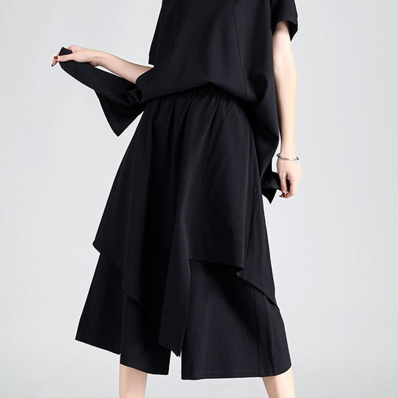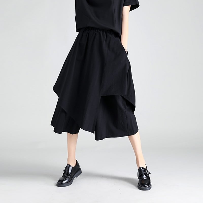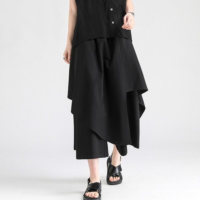 アシンメトリースカート風のレイヤードデザインが目を惹くクロップドパンツ。
