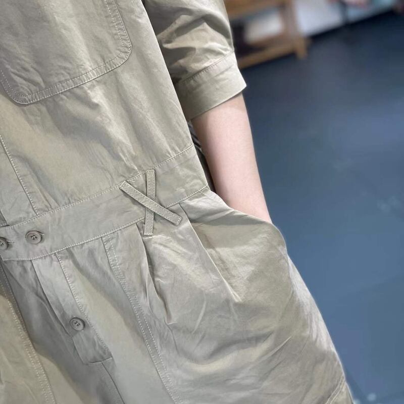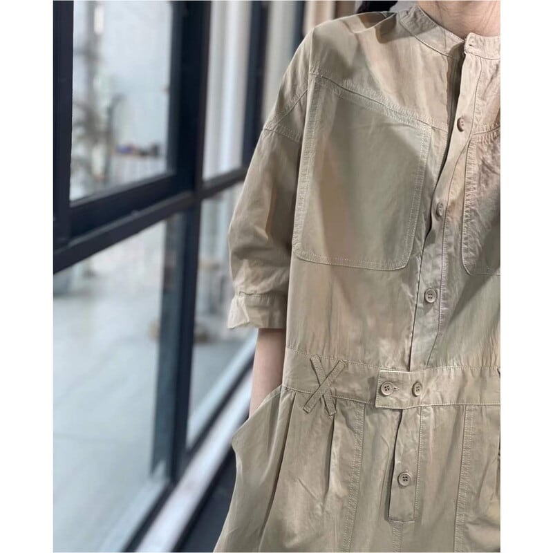 バンドカラーとアンクル丈が絶妙なバランスで、大人の女性らしさを引き立てます。