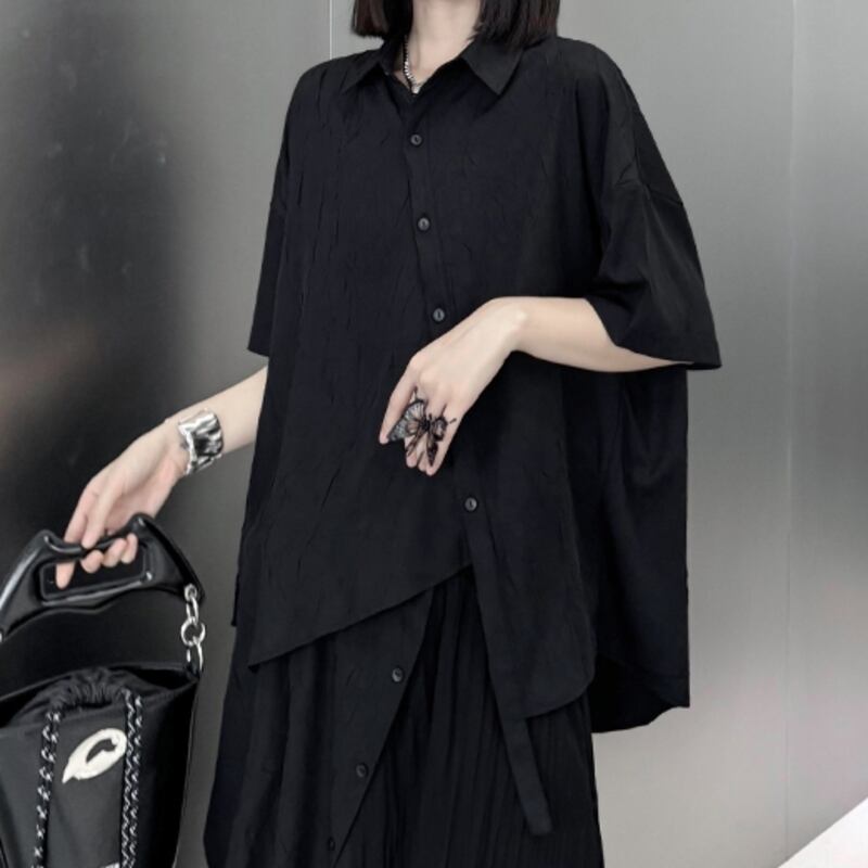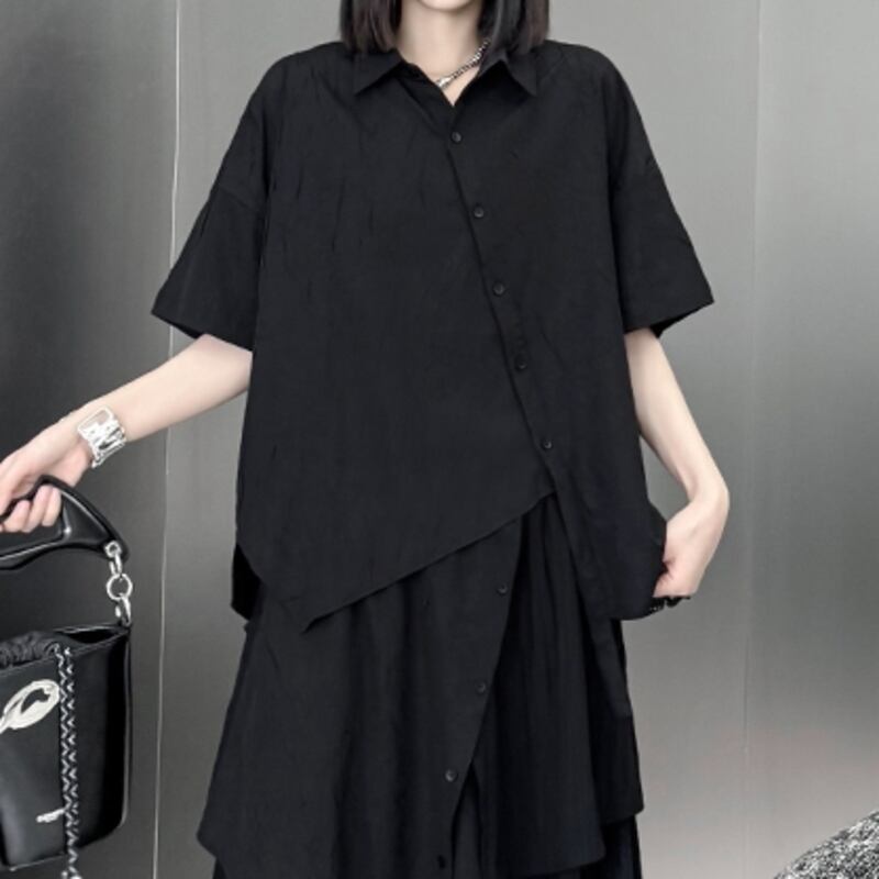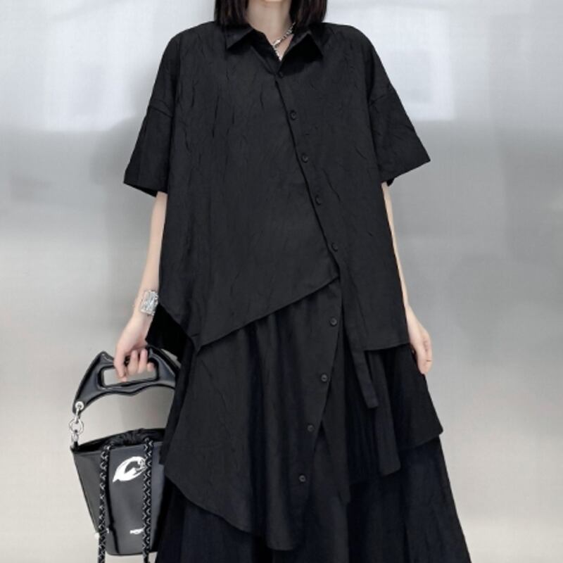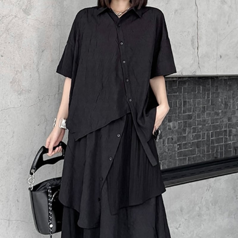 FREE 肩幅:58cm 胸囲:120cm ウエスト:122cm 裾まわり:132cm 着丈:77cm 袖丈:16cm