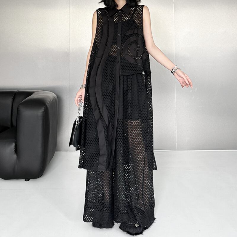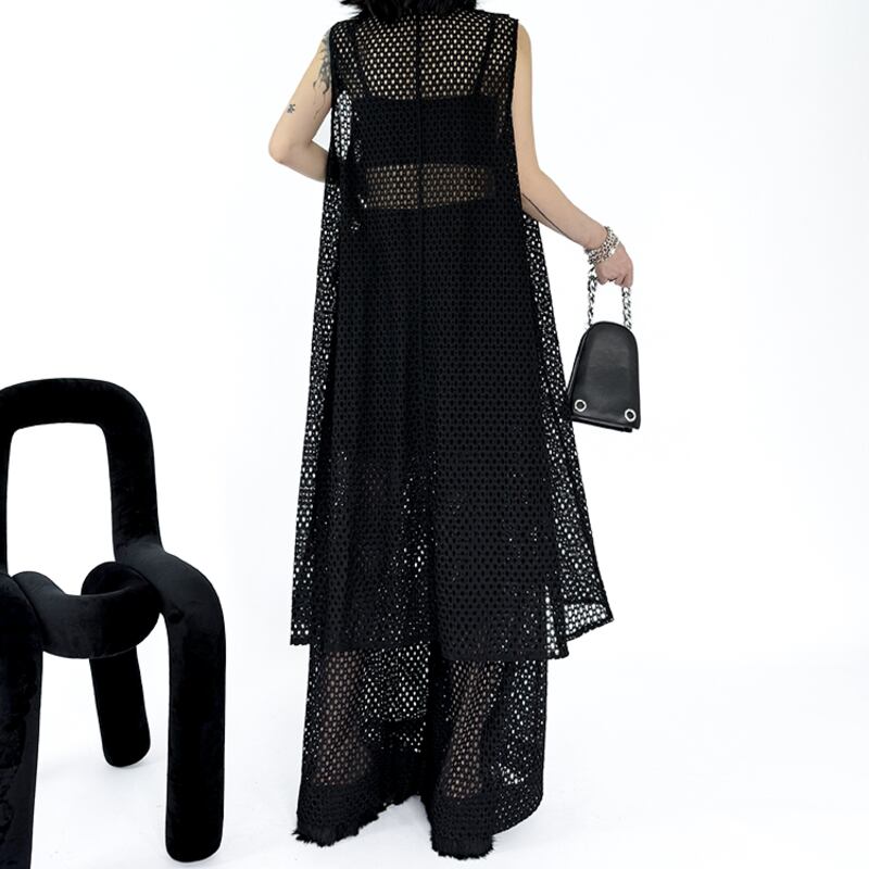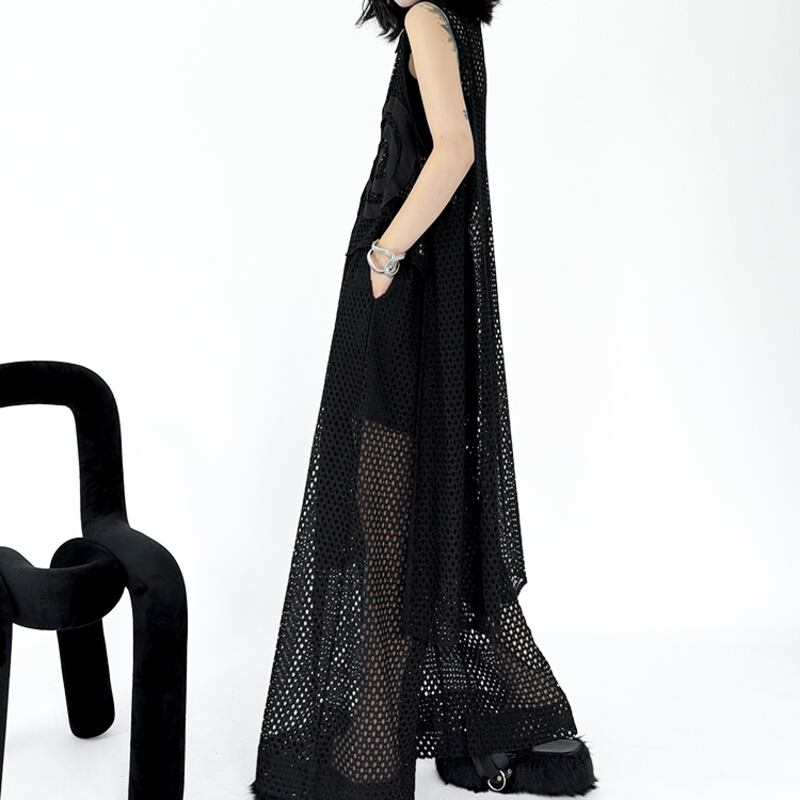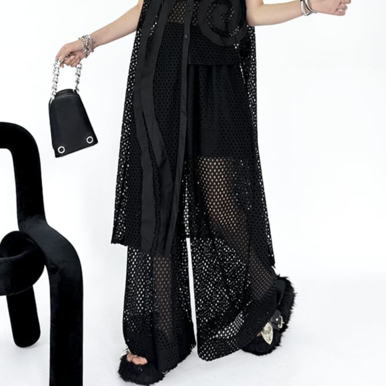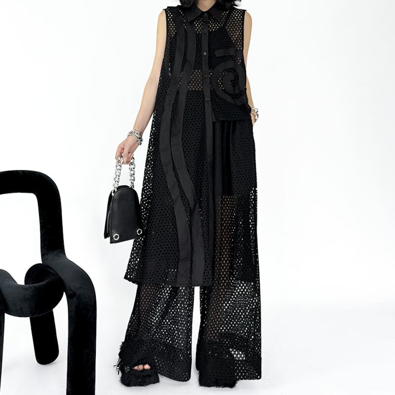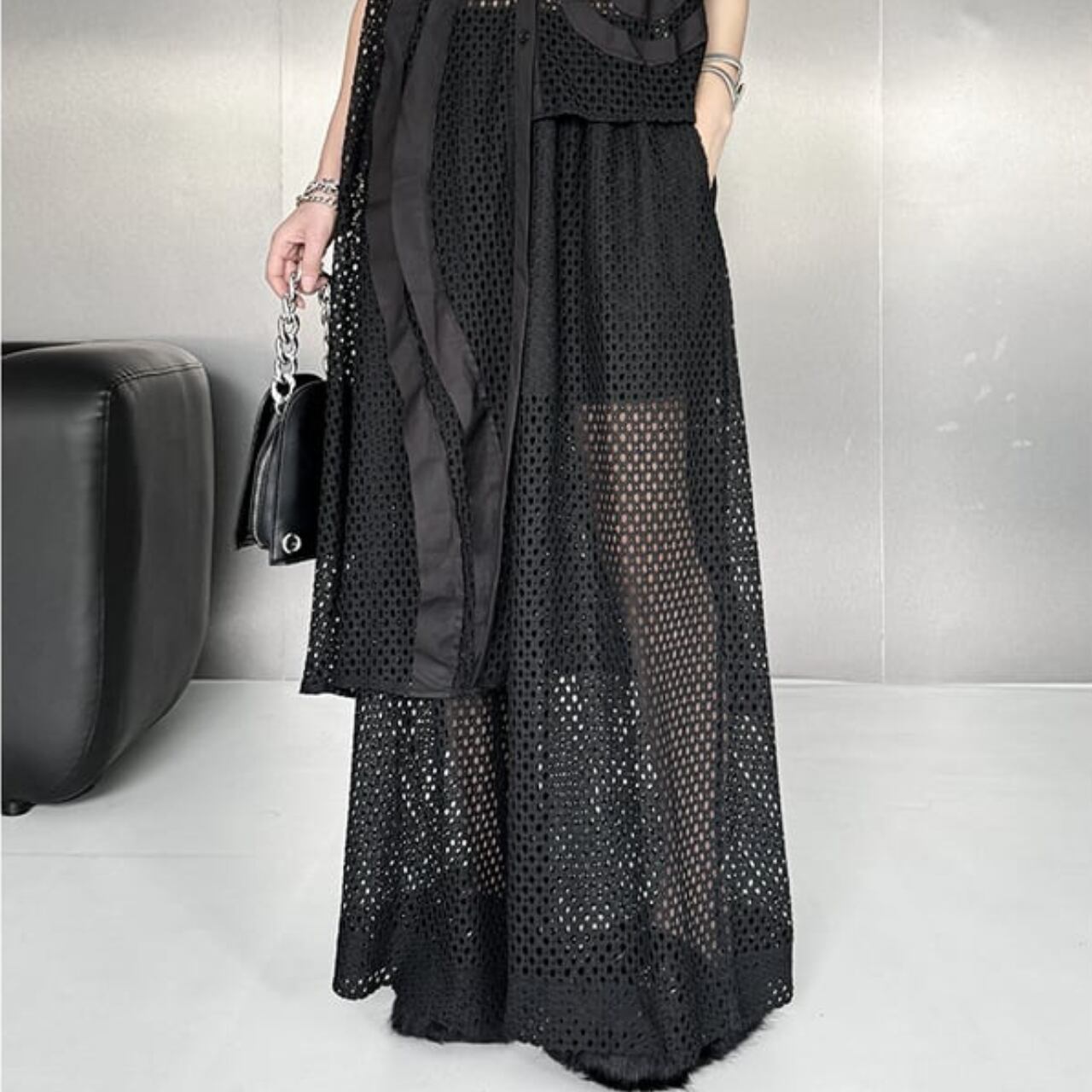 透け感のあるメッシュ素材が軽やかで、夏らしい涼しげな印象を与えます。