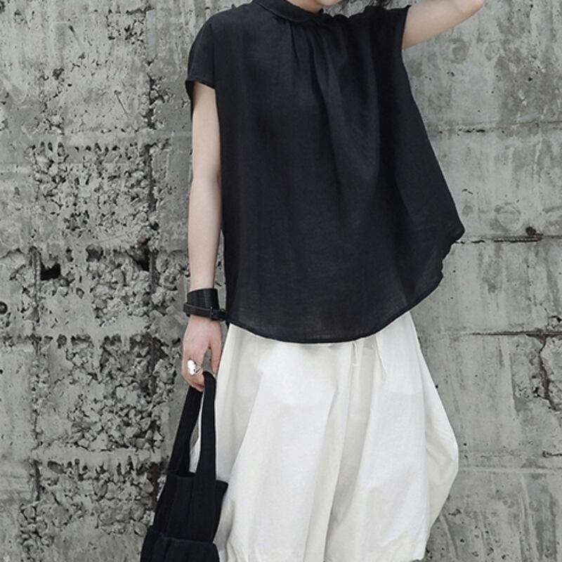上品なギャザーとフレンチスリーブが、女性らしい柔らかな印象を与えます。