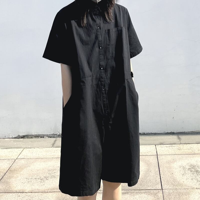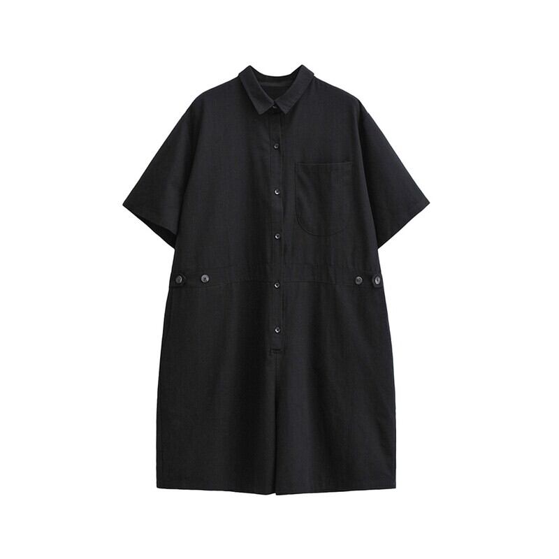 一枚でサマになるワイドレッグショート丈半袖ジャンプスーツ。