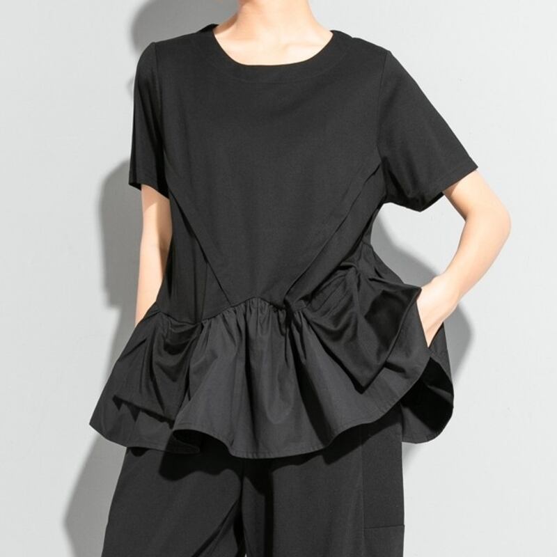 ペプラムデザインがポイントの個性的なトップスです。