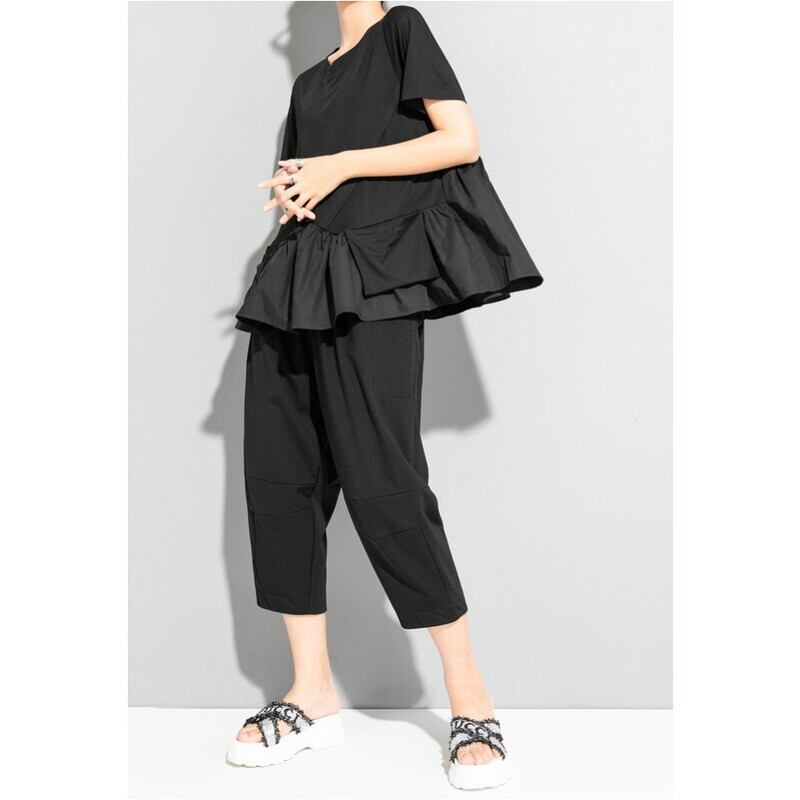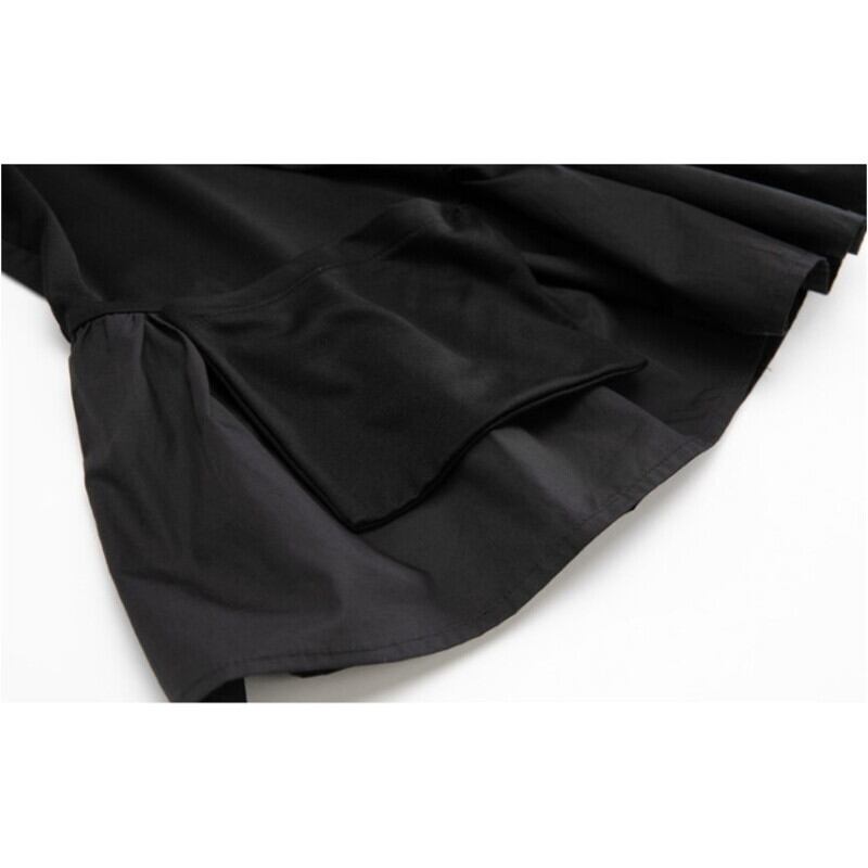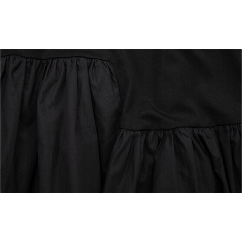 裾のティアードフリルが動きを出し、シンプルなデザインながらも着こなしに奥行きを与えます。