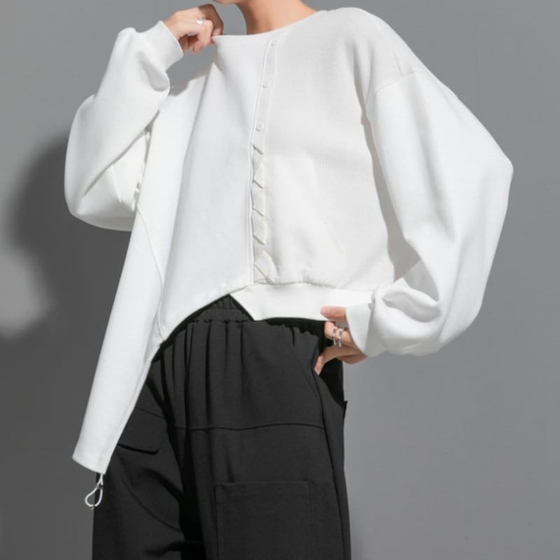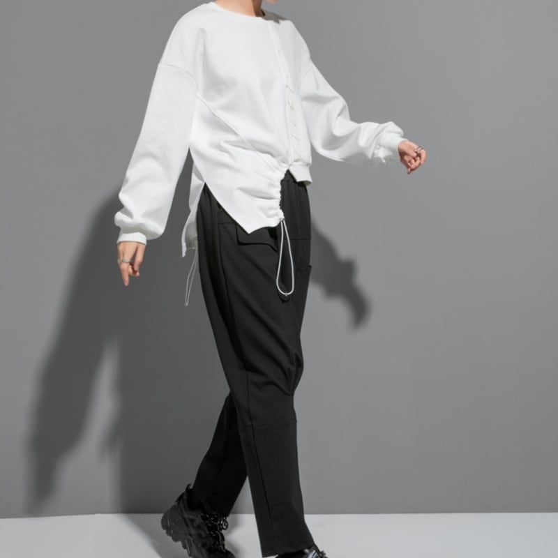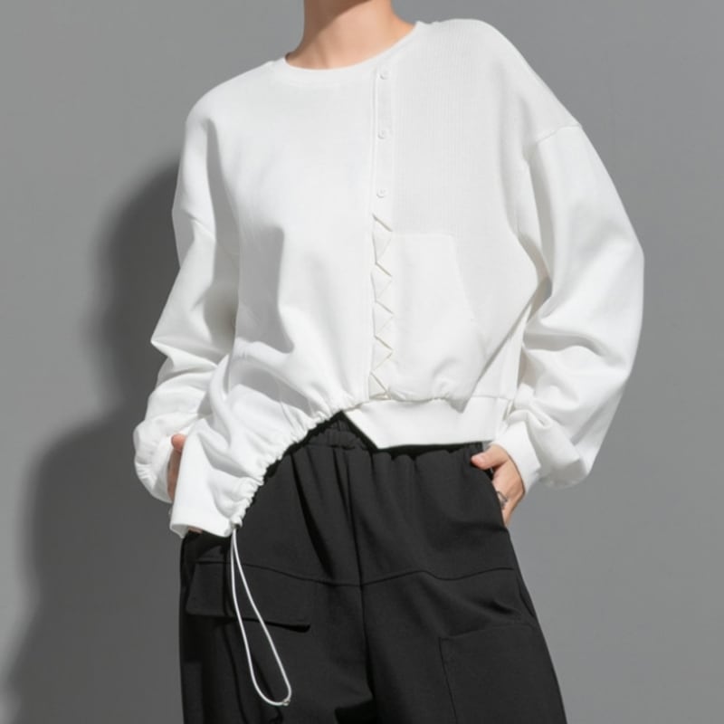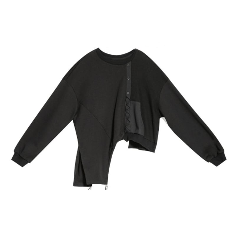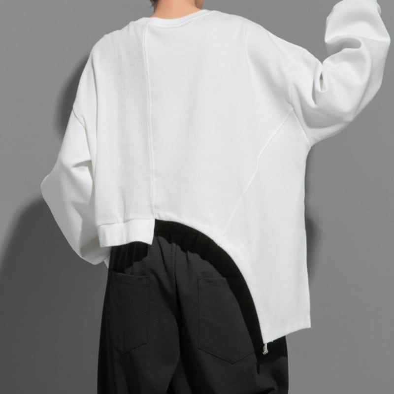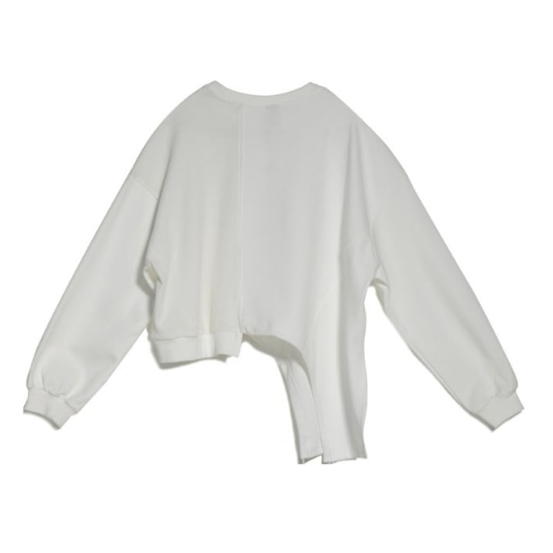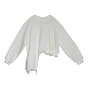 アシンメトリーなヘムラインとディティールデザインが目を惹くスウェットプルオーバーです。