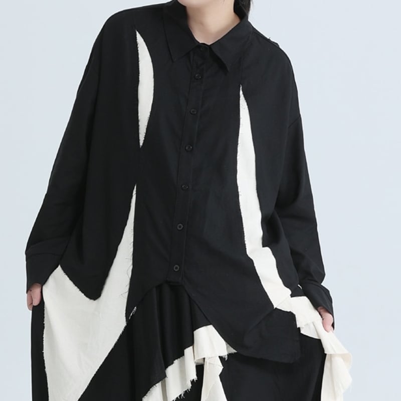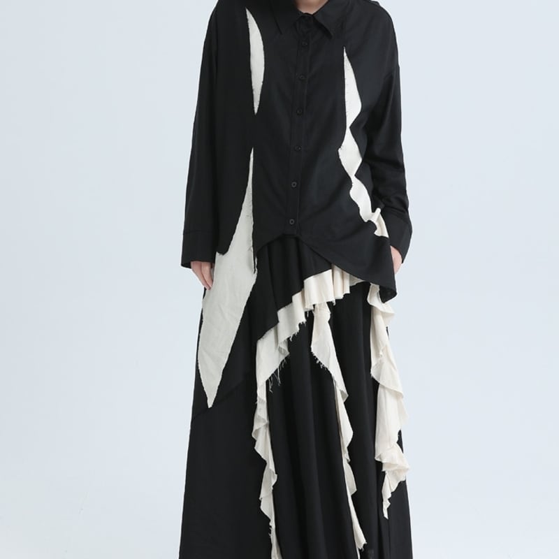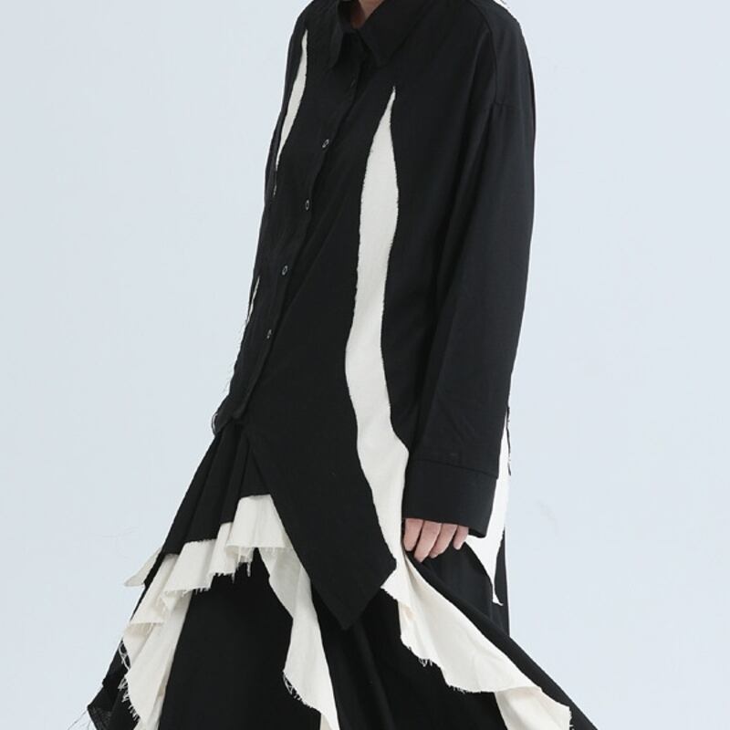 大胆なアシンメトリーカットとレイヤード風のデザインが加わり、他にはない存在感を放ちます。