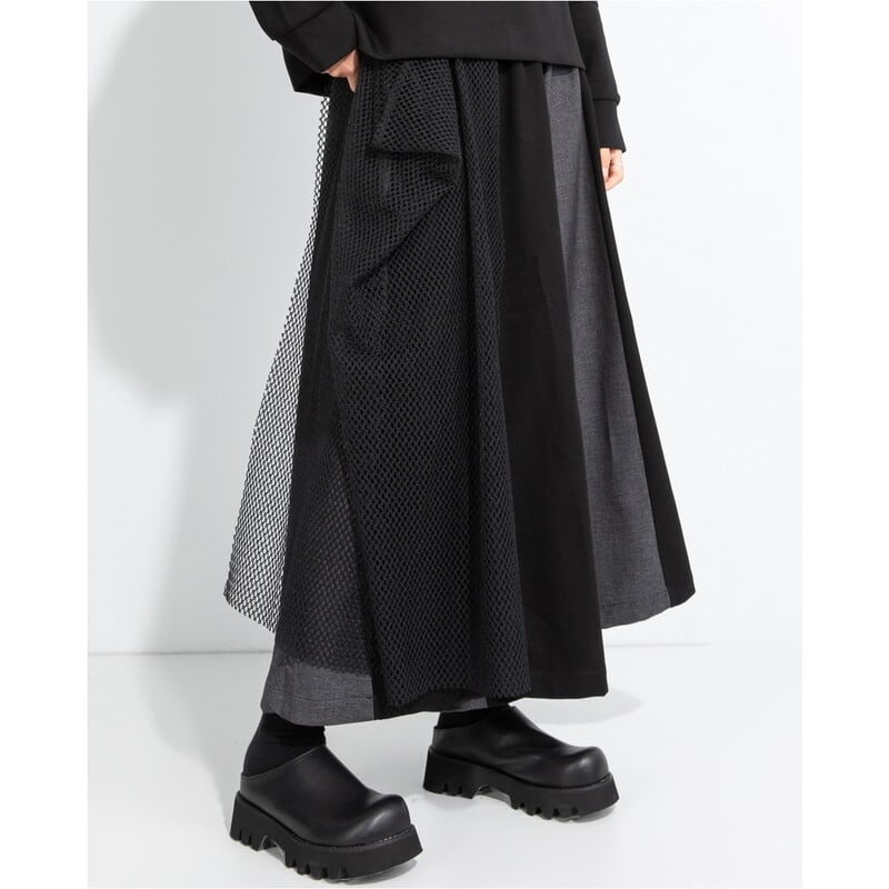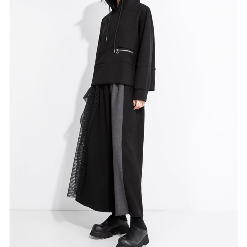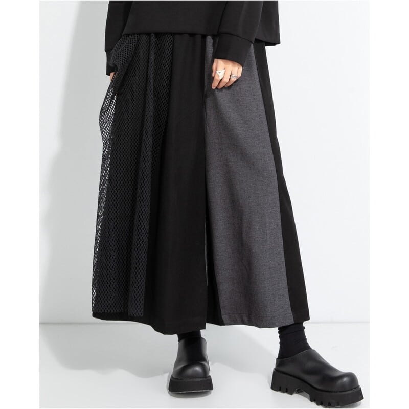 目を引く切り替えデザインのワイドクロップド丈パンツで、個性を演出しましょう。