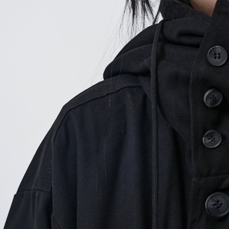 フード付きで、カジュアルにも着こなせる一着です。