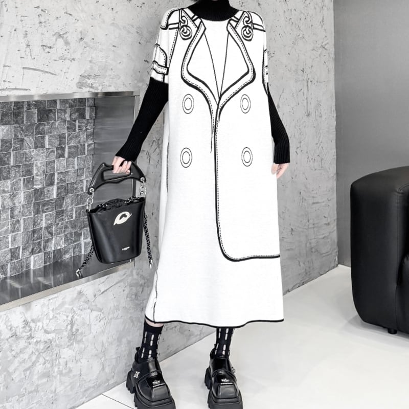 一枚でコーディネートが完成する本商品は、ブラックとホワイトの両面リバーシブルでお楽しみいただけます。