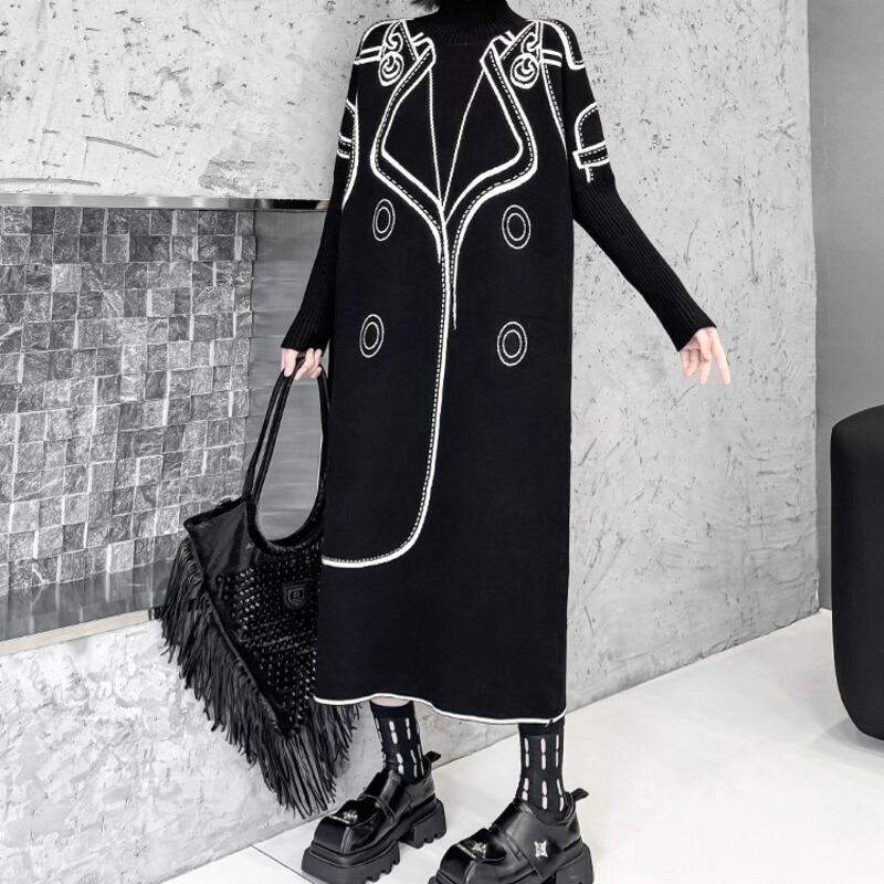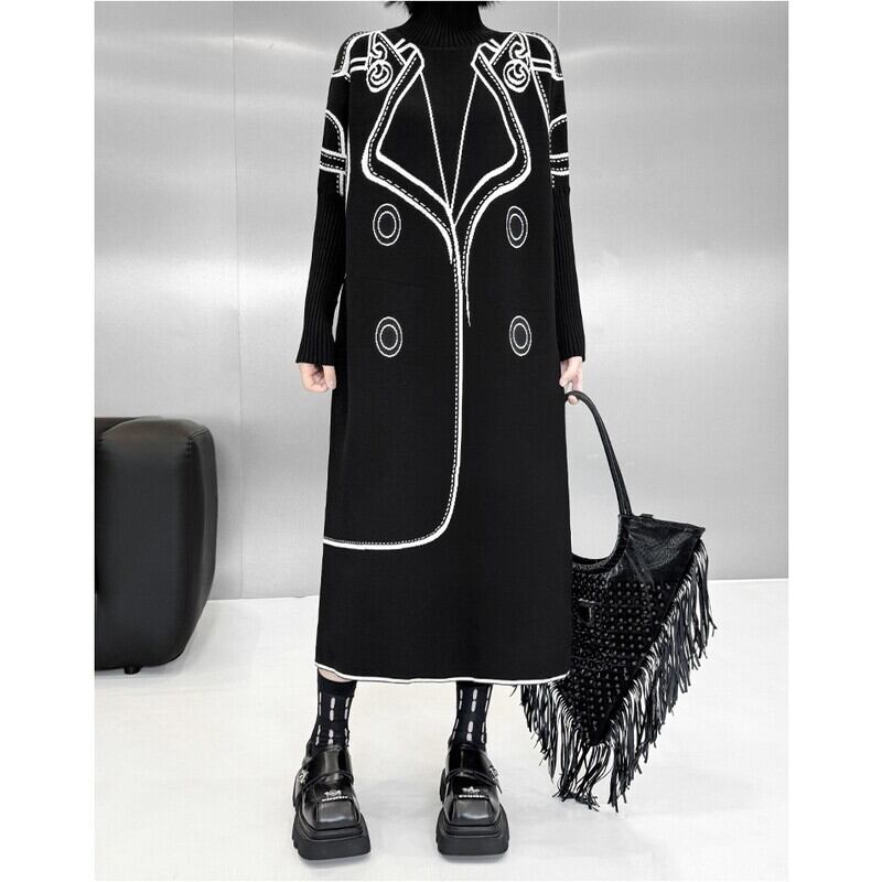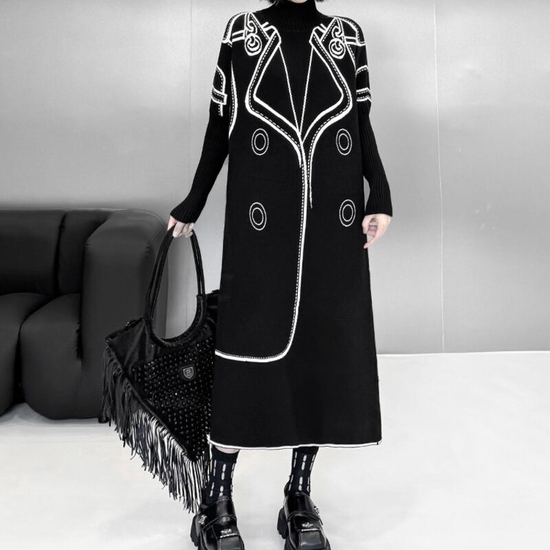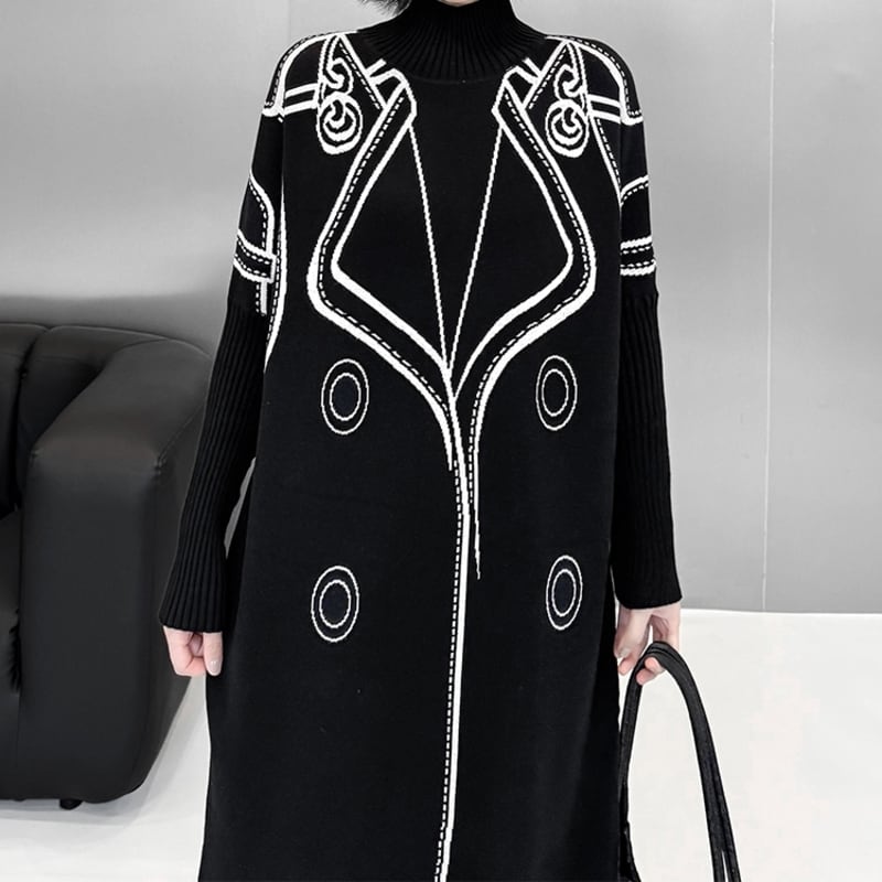 ダブルブレストのジャケットデザインが、クラシカルで洗練された雰囲気を演出します。
