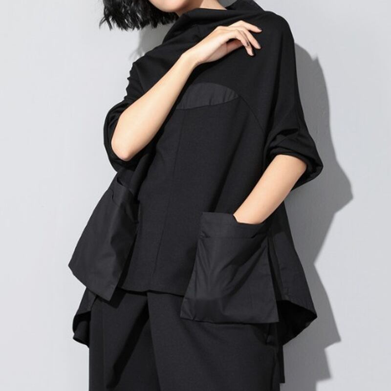 シンプルなデザインながら、特徴的なシルエットで着るだけでおしゃれな雰囲気に。